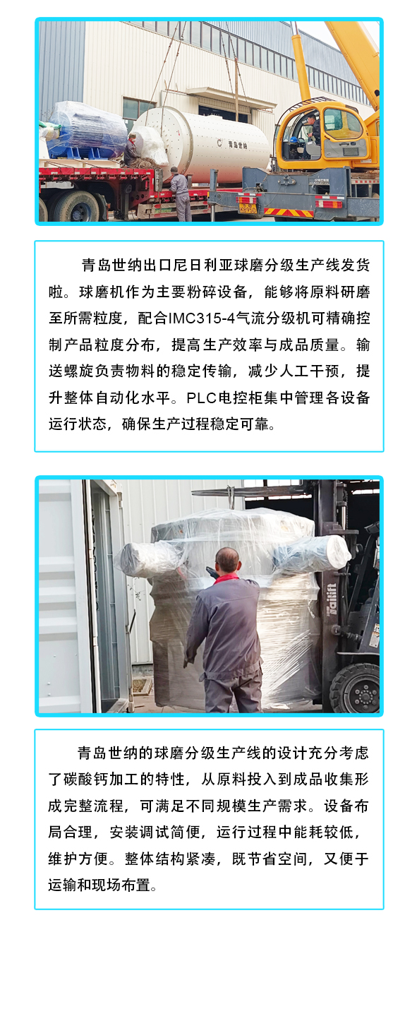 【青岛世纳】出口尼日利亚碳酸钙球磨分级生产线发货